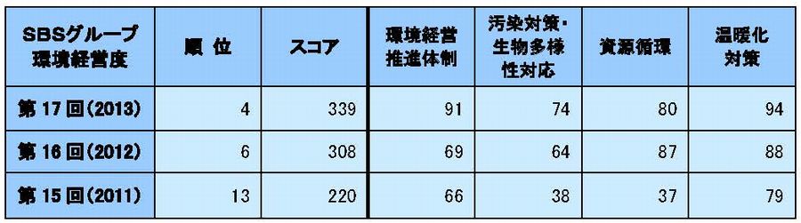 SBSグループ/日本経済新聞社 第17回「環境経営度調査」で第4位に