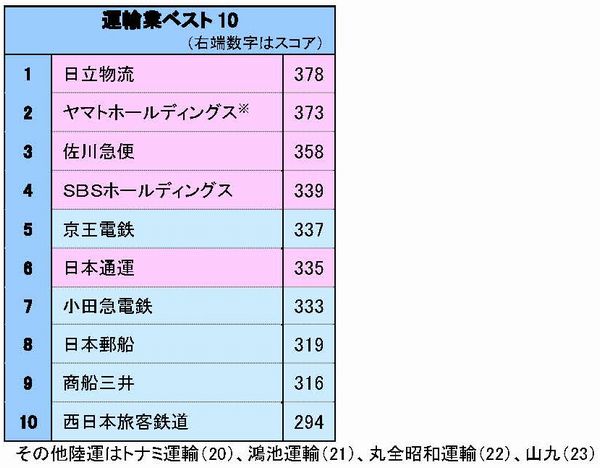 なお、運輸部門は当グループを含め陸運業が上位を独占する結果となっております。